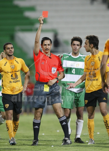 العربي ، القادسية ، قبل نهائي كأس الأمير 2007-2008 ، كرت احمر ، حكم ، سعد كميل صالح الشيخ، بدر المطوع ، محمد جراغ