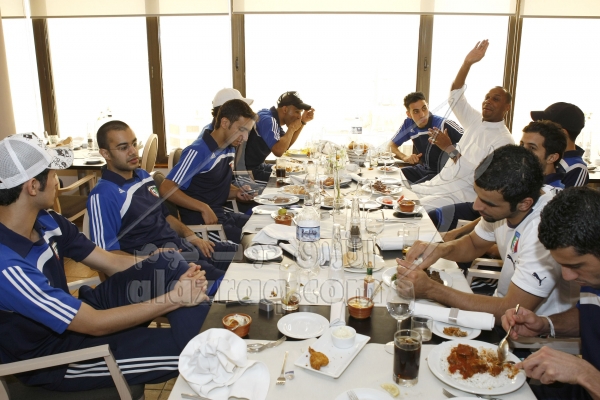 منتخب الكويت الوطني في فترة الغداء خلال معسكر الكويت في فندق السفير استعدادا للقاء سوريا بتصفيات كأس العالم 2010 بتاريخ 5 يونيو 2008