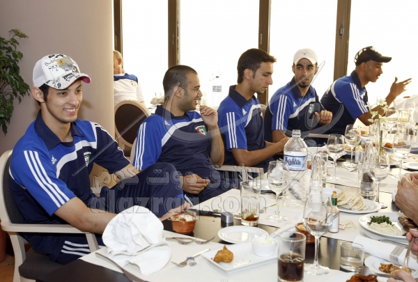 منتخب الكويت الوطني في فترة الغداء خلال معسكر الكويت في فندق السفير استعدادا للقاء سوريا بتصفيات كأس العالم 2010 بتاريخ 5 يونيو 2008
