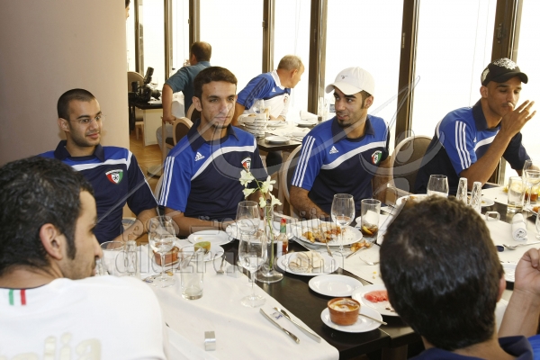 منتخب الكويت الوطني في فترة الغداء خلال معسكر الكويت في فندق السفير استعدادا للقاء سوريا بتصفيات كأس العالم 2010 بتاريخ 5 يونيو 2008
