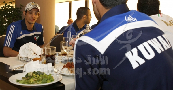 منتخب الكويت الوطني في فترة الغداء خلال معسكر الكويت في فندق السفير استعدادا للقاء سوريا بتصفيات كأس العالم 2010 بتاريخ 5 يونيو 2008
