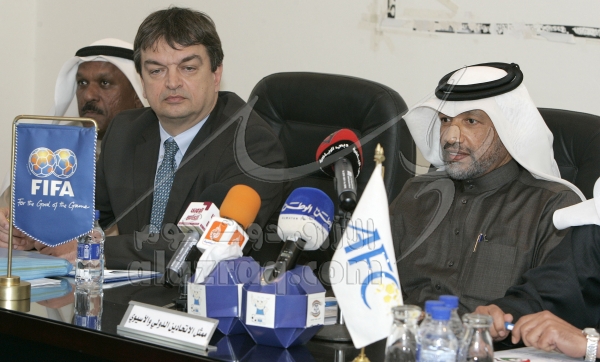 اجتماع وفد الفيفا المكون من محمد بن همام رئيس الإتحاد الآسيوي وجيرومي شامبين مدير العلاقات الدولية لدى الفيفا في الكويت بتاريخ 9 فبراير 2008