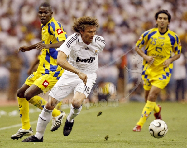النصر السعودي وريال مدريد في مباراة ضمن مهرجان اعتزال الاسطورة السعودية ماجد عبدالله في الرياض بتاريخ 20 مايو 2008