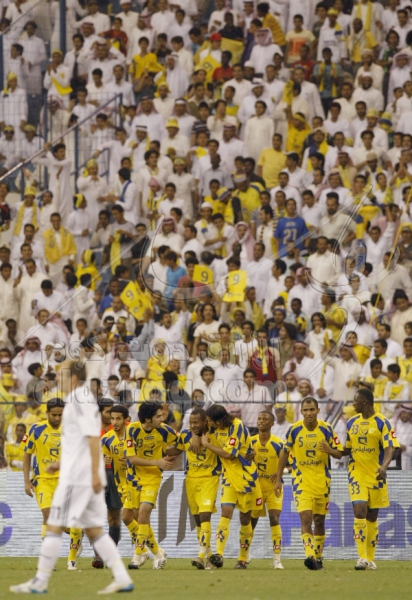 النصر السعودي وريال مدريد في مباراة ضمن مهرجان اعتزال الاسطورة السعودية ماجد عبدالله في الرياض بتاريخ 20 مايو 2008