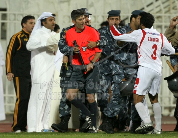 نادي الكويت ، القادسية ، الدوري الممتاز 2008-2009 ، فهد عوض ،هوشه ،شجار ،عنف ،شغب،قوات خاص،عسكر،شرطة ،حكم ،حميد عرب