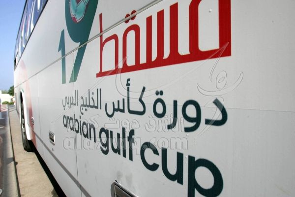 شعار خليجي 19 على احد الباصات خلال خليجي 19 في مسقط بتاريخ 3 يناير 2009