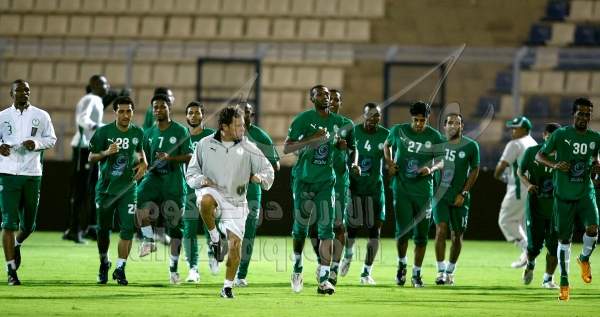 تدريب منتخب السعودية خلال خليجي 19 في مسقط بتاريخ 3 يناير 2009