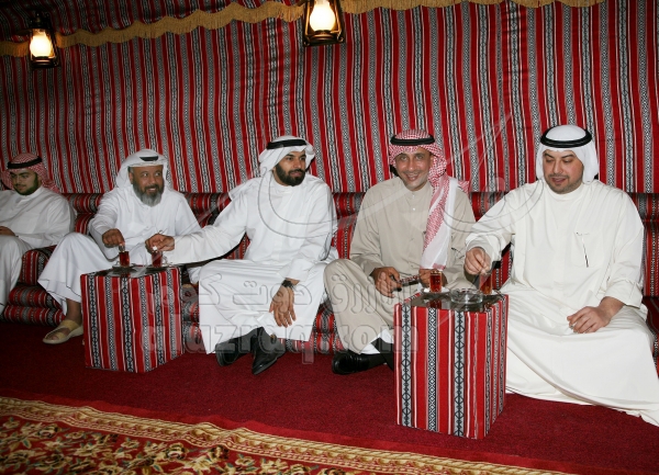 عشاء السفير الكويتي بحضور وزير الشؤون بدر الدويلة ومدير هيئة الشباب والرياضة فيضل الجزاف والشيخ احمد الفهد والشيخ طلال الفهد خلال خليجي 19 بتاريخ 3 يناير 2009