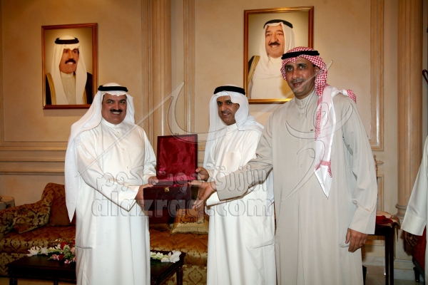 عشاء السفير الكويتي بحضور وزير الشؤون بدر الدويلة ومدير هيئة الشباب والرياضة فيضل الجزاف والشيخ احمد الفهد والشيخ طلال الفهد خلال خليجي 19 بتاريخ 3 يناير 2009