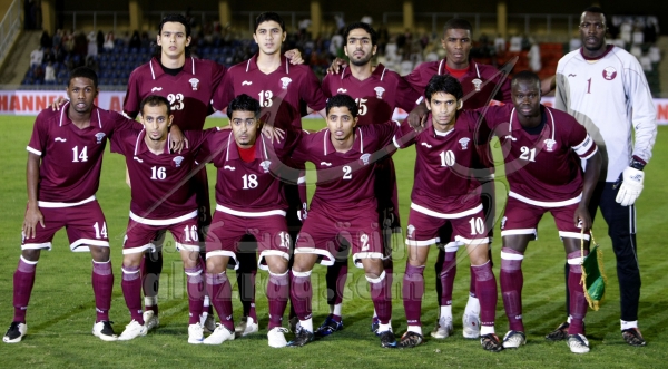 منتخب قطر في صور جماعية خلال خليجي 19 في مسقط بتاريخ 6 يناير 2009