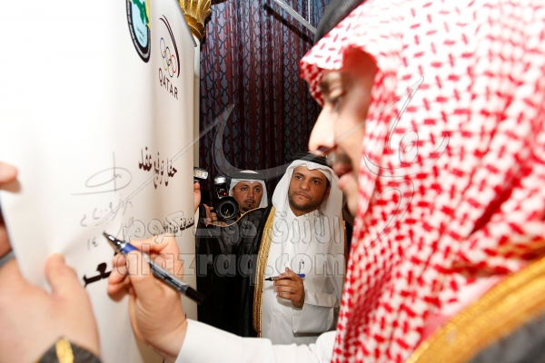 الامير سلطان بن فهد خلال توقيع اتفاقية استضافة البطولة العربية في قطر بتاريخ 6 يناير 2009