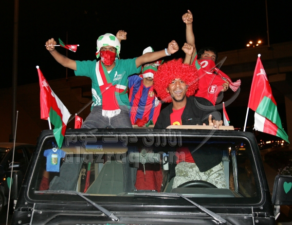 جماهير عمانية بعد فوز منتخب عمان على منتخب البحرين في مباراة ضمن خليجي 19 في مسقط بتاريخ 10 يناير 2009