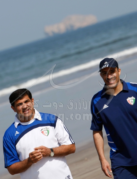 جولة لمدرب الكويت محمد ابراهيم وبعض اللاعبين على الشاطئ في فندق اللاعبين في مسقط بتاريخ 11 يناير 2009