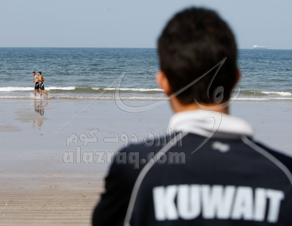 جولة لمدرب الكويت محمد ابراهيم وبعض اللاعبين على الشاطئ في فندق اللاعبين في مسقط بتاريخ 11 يناير 2009