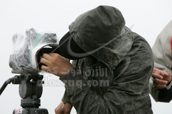 طاقم تصوير تلفزيون الوطن المصور محمود الحوساني خلال العاصفة الرعدية في مسقط بتاريخ 14 يناير 2009