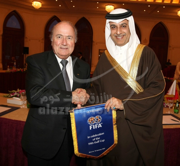 اجتماع سيب بلاتر برؤساء الاتحادات الخليجية خلال خليجي 19 في مسقط بتاريخ 14 يناير 2009