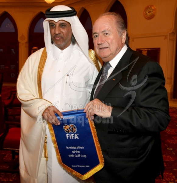 اجتماع سيب بلاتر برؤساء الاتحادات الخليجية خلال خليجي 19 في مسقط بتاريخ 14 يناير 2009