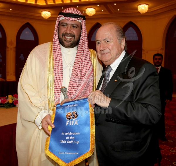 اجتماع سيب بلاتر برؤساء الاتحادات الخليجية خلال خليجي 19 في مسقط بتاريخ 14 يناير 2009