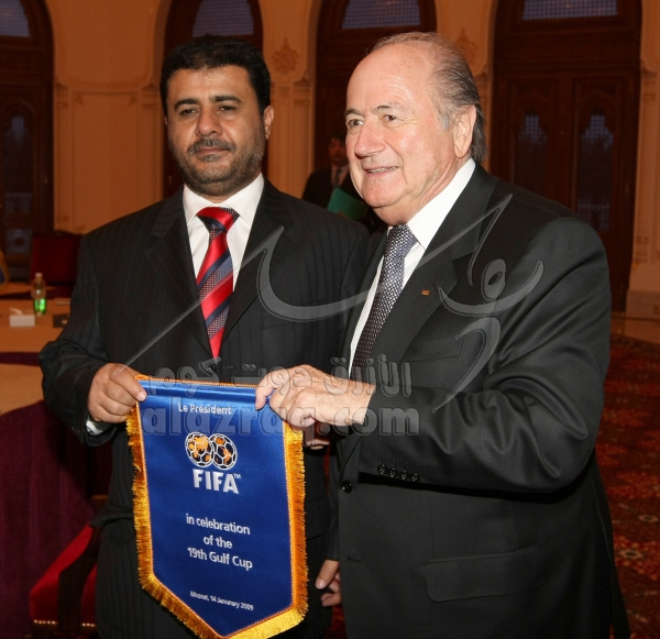 اجتماع سيب بلاتر برؤساء الاتحادات الخليجية خلال خليجي 19 في مسقط بتاريخ 14 يناير 2009