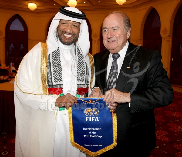 اجتماع سيب بلاتر برؤساء الاتحادات الخليجية خلال خليجي 19 في مسقط بتاريخ 14 يناير 2009