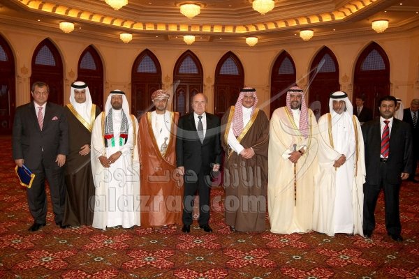 اجتماع سيب بلاتر برؤساء الاتحادات الخليجية خلال خليجي 19 في مسقط بتاريخ 14 يناير 2009