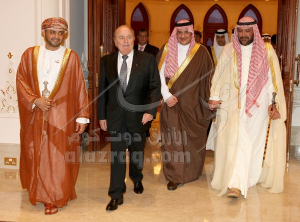 اجتماع سيب بلاتر برؤساء الاتحادات الخليجية خلال خليجي 19 في مسقط بتاريخ 14 يناير 2009