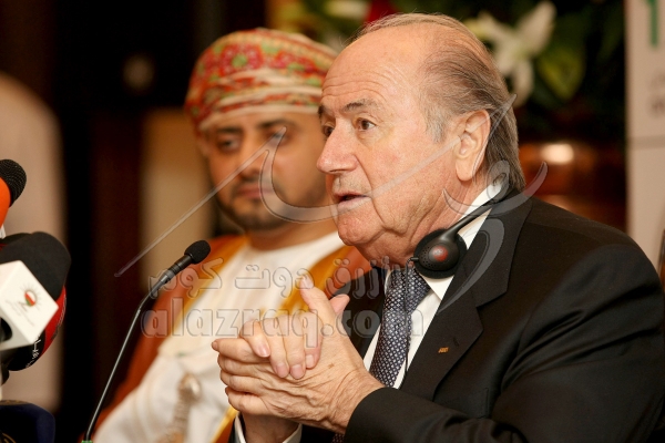 اجتماع سيب بلاتر برؤساء الاتحادات الخليجية خلال خليجي 19 في مسقط بتاريخ 14 يناير 2009