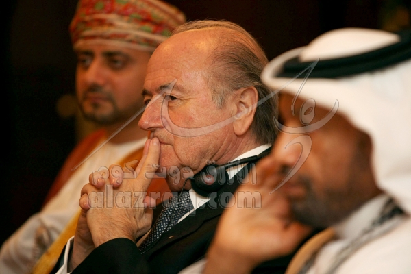 اجتماع سيب بلاتر برؤساء الاتحادات الخليجية خلال خليجي 19 في مسقط بتاريخ 14 يناير 2009