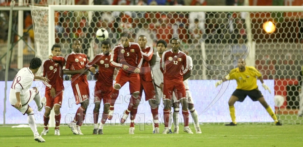 منتخب عمان ومنتخب قطر في مباراة ضمن خليجي 19 في مسقط بتاريخ 14 يناير 2009