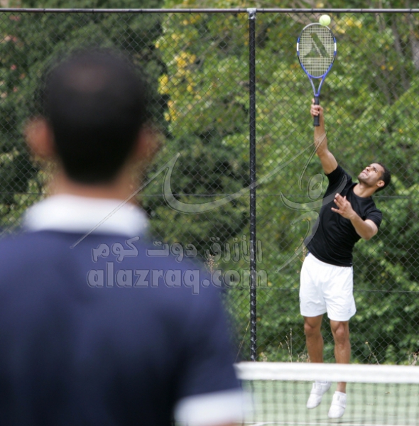 بدر المطوع وحسين فاضل بعد تمرين الصباح يمارسان التنس في فندق اللاعبين في كانبرا بإستراليا بتاريخ 2 مارس 2009