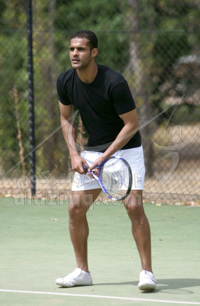 بدر المطوع وحسين فاضل بعد تمرين الصباح يمارسان التنس في فندق اللاعبين في كانبرا بإستراليا بتاريخ 2 مارس 2009