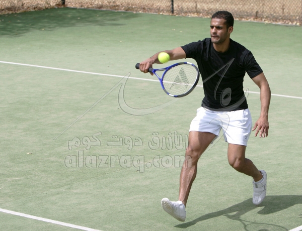 بدر المطوع وحسين فاضل بعد تمرين الصباح يمارسان التنس في فندق اللاعبين في كانبرا بإستراليا بتاريخ 2 مارس 2009