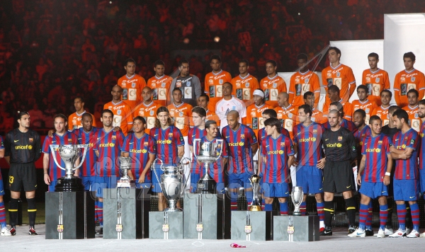 نادي كاظمة ونادي برشلونه في مباراة ودية اقيمت في الكويت بتاريخ 21 ديسمبر 2009 بمناسبة الاحتفالية ال45 على تأسيس كاظمة