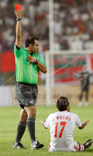 نادي القادسية ، نادي الاتحاد السوري، نهائي كأس الاتحاد الاسيوي، حكم خليل الغامدي ، كرت احمر