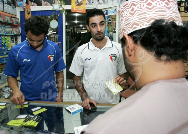 عنوان الصورة: لاعبو الكويت يشترون كروت اتصالات