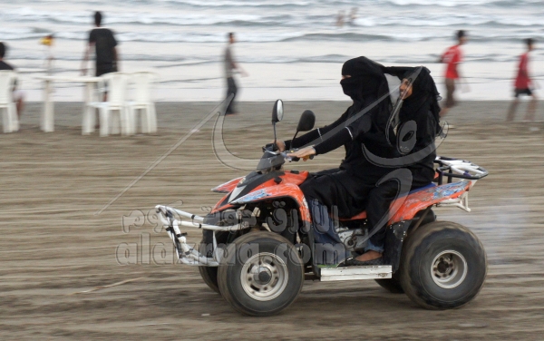 فتيات يقودن البانشي في احد سواحل عدن خلال خليجي 20 بتاريخ 19 نوفمبر 2010