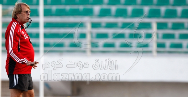 مدرب منتخب عمان لوروا خلال حصة تدريب المنتخب على ملعب التلال في عدن خلال خليجي 20 بتاريخ 21 نوفمبر 2010