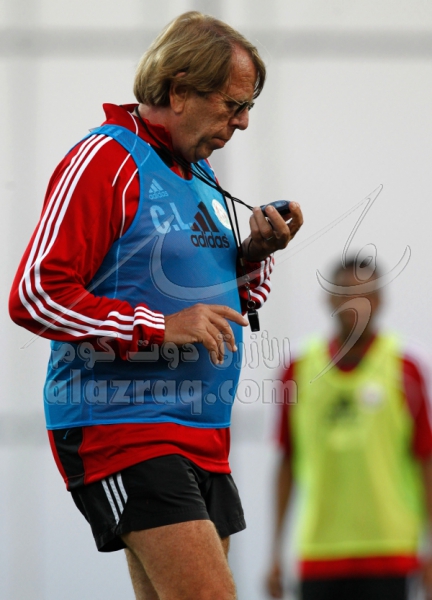 مدرب منتخب عمان لوروا خلال حصة تدريب المنتخب على ملعب التلال في عدن خلال خليجي 20 بتاريخ 21 نوفمبر 2010