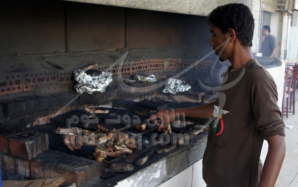 عامل يمني يقوم بتجهيز المظبي والمخمود في احد مطاعم المندي عدن بتاريخ 21 نوفمبر 2010