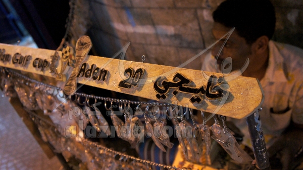 يمني يقوم بتصنيع ميداليات خليجي 20 في احد اسواق عدن بتاريخ 21 نوفمبر 2010