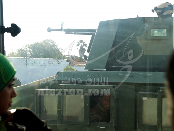 عنوان الصورة: فتاة تشاهد مركبة عسكرية