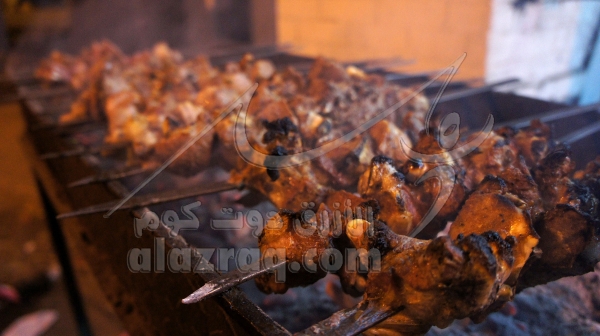 شواء الماعز تيس طازج بعد تقطيعه حسب طلب الزبائن في احد مطاعم عدن خلال خليجي 20 بتاريخ 24 نوفمبر 2010