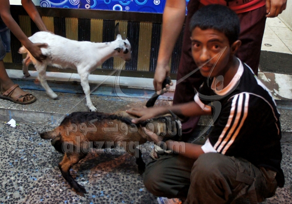 عامل في احد المطاعم يختار ماعز تيس لتجهيز وليمة طازجة لزبائنه في عدن خلال خليجي 20 بتاريخ 24 نوفمبر 2010