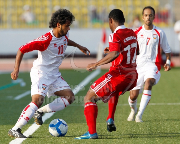 منتخب الإمارات ومنتخب عمان في مباراة ضمن خليجي 20 على ملعب 22 مايو في عدن بتاريخ 26 نوفمبر 2010