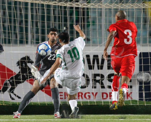 منتخب العراق ومنتخب البحرين في مباراة على ملعب 22 مايو في عدن ضمن خليجي 20 بتاريخ 26 نوفمبر 2010