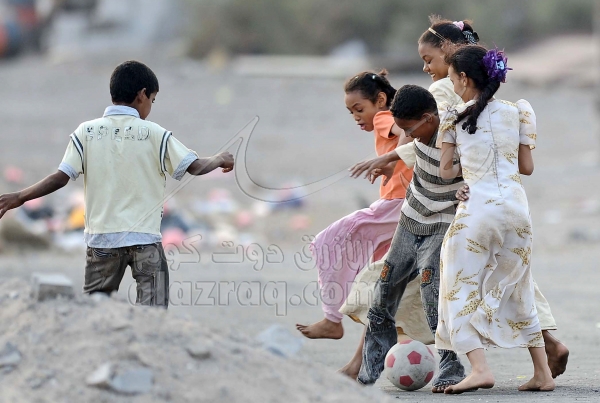 اطفال يلعبون كرة قدم في احد قرى عدن خلال خليجي 20 بتاريخ 26 نوفمبر 2010