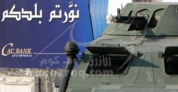 عنوان الصورة: مدرعة امام لوحة اعلانية