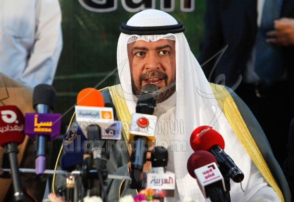 الشيخ أحمد الفهد خلال المؤتمر الصحفي في فندق ميركيور عدن خلال خليجي 20 بتاريخ 28 نوفمبر 2010