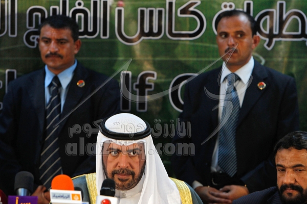 الشيخ أحمد الفهد خلال المؤتمر الصحفي في فندق ميركيور عدن خلال خليجي 20 بتاريخ 28 نوفمبر 2010