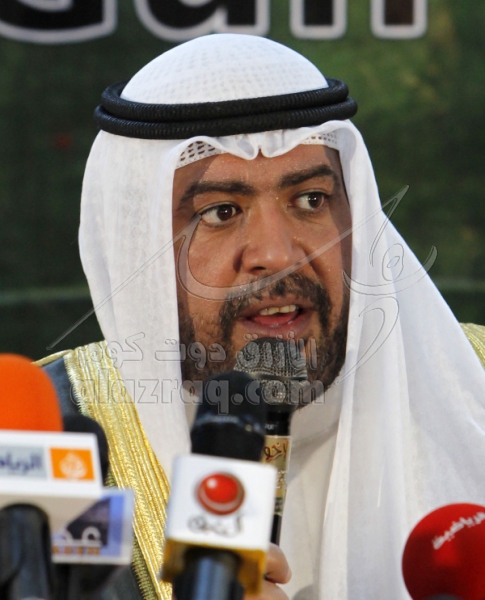 الشيخ أحمد الفهد خلال المؤتمر الصحفي في فندق ميركيور عدن خلال خليجي 20 بتاريخ 28 نوفمبر 2010